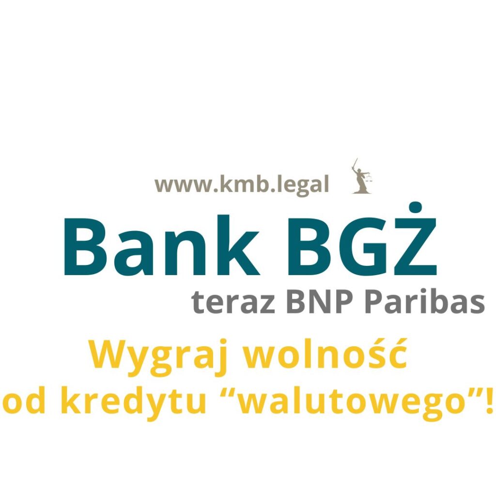 Jeżeli posiadasz kredyt frankowy lub w euro zawarty z Bankiem Gospodarki Żywnościowej (obecnie BNP Paribas) nie czekaj i skontaktuj się z nami już dziś. Mamy wieloletnie doświadczenie w sporach z bankami. Skutecznie pomagamy naszym klientom unieważniać nieuczciwe umowy kredytowe. Każdego dnia uzyskujemy kolejne wyroki, które potwierdzają wadliwość kredytów frankowych w euro i umożliwiają naszym klientom odzyskanie nadpłaconych środków. Wiemy, jak banki próbują bronić swoich interesów i jak skutecznie przeciwstawić się ich argumentacji przed sądem. Nie warto czekać, aż bank zaproponuje Ci pozorne rozwiązanie. Zaufaj sprawdzonej kancelarii i podejmij działania, które realnie zabezpieczą Twoją przyszłość finansową. Wystarczy jeden krok, aby uwolnić się od toksycznego kredytu i odzyskać należne Ci pieniądze. Skontaktuj się z nami, a zajmiemy się resztą!